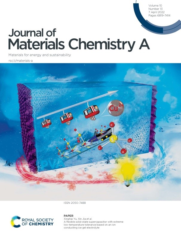 近日,公司zoty中欧禹兴海老师与公司特聘教授、石河子大学贾鑫老师共同合作完成的科研成果“A flexible solid-state supercapacitor with extreme low-temperature tolerance based on an ion conducting ice gel electrolyte”发表在国际顶级期刊《Journal of Materials Chemistry A》(中科院一区TOP期刊, IF=12.7),并作为亮点工作,被选为当期内封面文章。