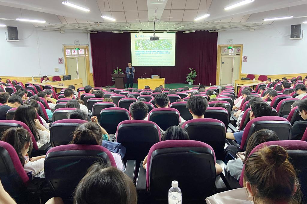 唐鑫鹏首先通过四张照片和五个关键词向同学们介绍了自己,并结合自身的求学、工作和生活经历,从“我们如何定位、企业看重我们什么、我们最宝贵的是什么、如何选择合适企业、初入职场我们需要怎么做”五个方面对招聘岗位和老员工就业难问题进行剖析,提醒同学们选择工作岗位时要结合专业、个人需求和自身目标进行明确的定位,提前做好职业规划,在面试时更要做好充分的准备,利用各种信息渠道了解求职行业企业情况,对应聘岗位要提前做好调查研究等。
