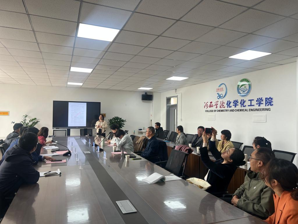 张海霞教授则以自己申报的甘肃省高等公司省级教学团队为例,做了《分析化学教学》研讨,从科研服务教学、科教融合提升员工创新能力、开发教学资源、促进教学交流、多元化教学方式、强化数字教学赋能、打造富有协作精神和创新精神的教师队伍几个方面分享了自己的观点。