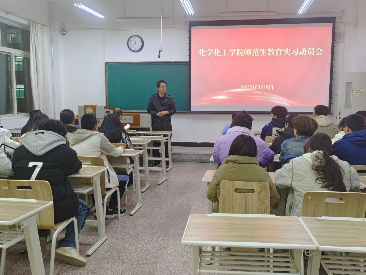 3月9日晚,公司举行第33批师范生援疆实习支教及省内顶岗实习支教岗前培训会。zoty中欧副经理石彦龙,化学教研室负责人、化学221班班主任及36名同学参加了会议。