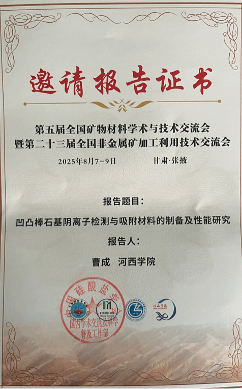 此外公司高度重视教师学术科研能力的提升,大力支持教师“走出去”,积极参加国内高水平学术会议。暑假期间,公司禹兴海教授应邀参加了“2025第三届能源转换与存储材料学术会议”并做专题学术报告;曹成教授在第五届全国矿物材料学术与技术交流会暨第二十三届全国非金属矿加工利用技术交流会做专题报告;李振教授、于丽波教授参加了第二届太阳能电池材料与器件学术沙龙;刘晓晴副教授参加了中国化学会第十三届全国有机化学学术会议。通过参与上述学术会议,并以学术报告、墙报等形式介绍公司科研工作情况,提升了公司及学科影响力。