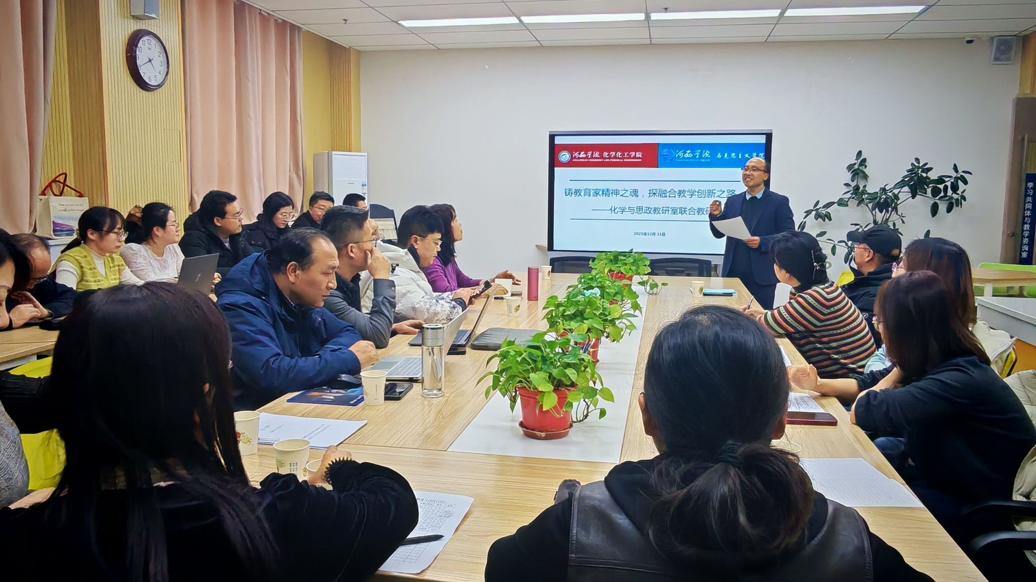 为推动专业教学与课程思政深度融合,近日,公司化学教研室和马克思主义公司思政教研室联合开展以“铸教育家精神之魂,探融合教学创新之路”为主题的教研活动,围绕课程思政元素挖掘与教学实践展开深入研讨。