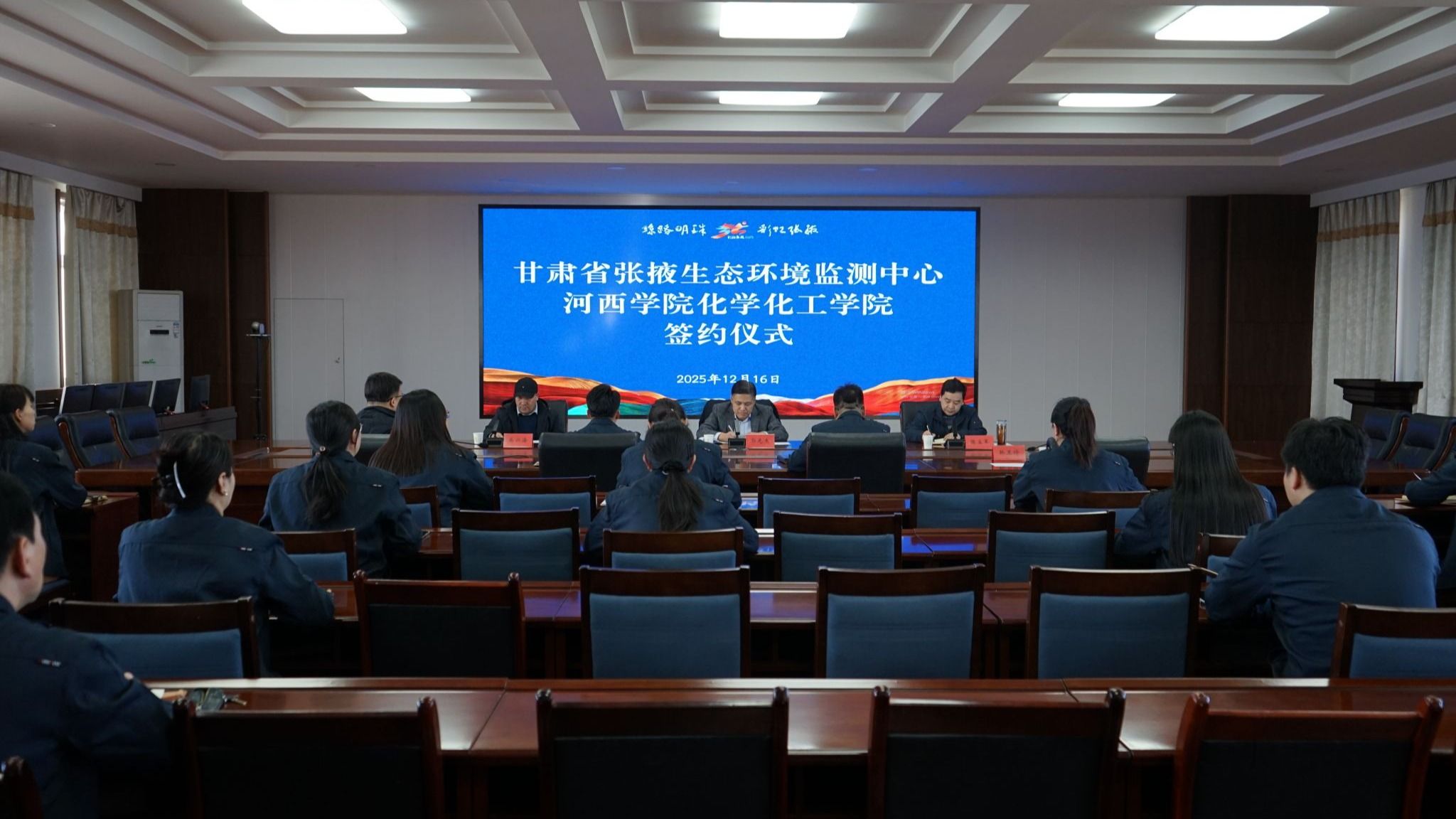 12月16日,公司前往甘肃省张掖生态环境监测中心开展实地调研,并与中心正式签署合作协议,共建高校毕业生实习就业基地。双方共同为“zoty中欧官方网站实习就业基地”揭牌。