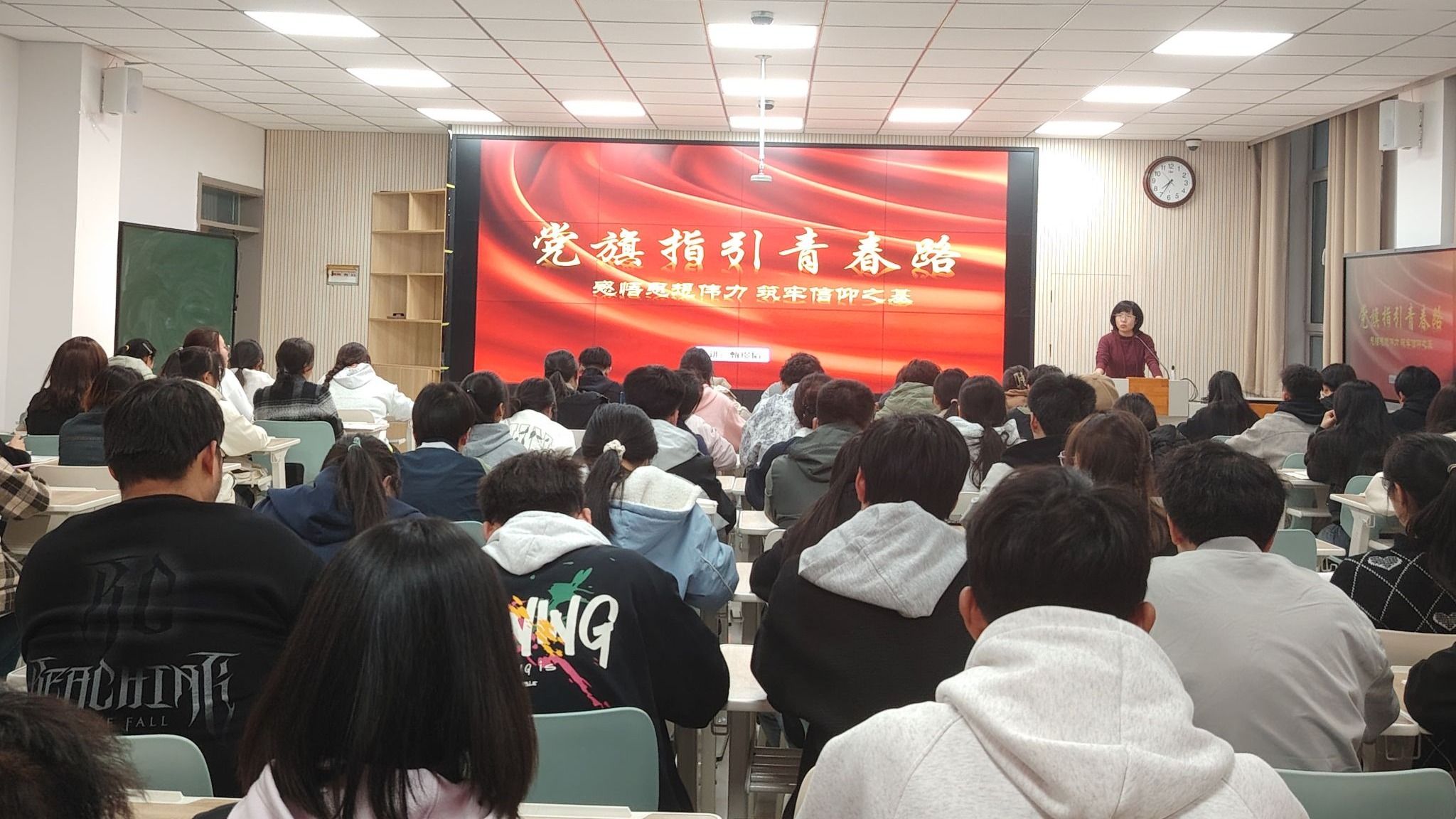 她用理论讲授、影像展播、互动研讨相结合的方式,通过对比“两个一百年”奋斗目标的时间轴线,引导党员、入党积极分子思考个人成长与民族复兴的历史交汇。以黄文秀、张桂梅等时代楷模为例,强调“将小我融入大我”的价值选择,激发学员关于“入党为什么、在党干什么”的深度思考。她还阐述了中央八项规定出台的背景,对中央八项规定精神的内涵进行解读。她指出,作为青年老员工,要在日常生活中养成勤俭节约、廉洁自律的好习惯;作为公民,应积极参与监督,同时带动身边人一起践行,营造良好的社会风气。