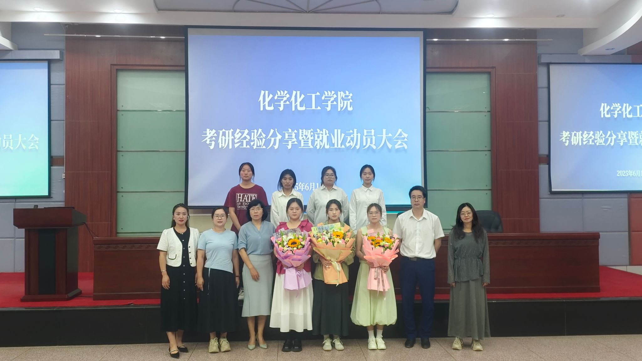 为帮助员工明晰职业发展目标,zoty中欧于近日举办考研经验分享暨就业动员大会。2025届三位优秀考研毕业生代表——化学212班顾雪兰(考取新疆大学)、应化 211 班臧伯馨(考取安徽师范大学)、化学 212 班方雪如(考取西北师范大学)受邀分享经验,公司领导、班主任、辅导员、2026届、2027届毕业生共300余人参加活动。